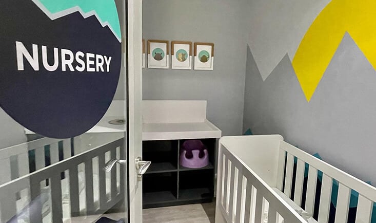Our temperature-controlled nursery is a cosy, safe and fun environment for young babies. They’re free to play and nap while you train, and when they’re up and about, we’ll keep them busy.